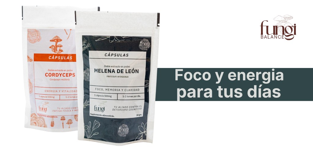 - Con el desayuno: Melena de León + Cordyceps si es día de actividad. Solo Melena si es día de trabajo mental.